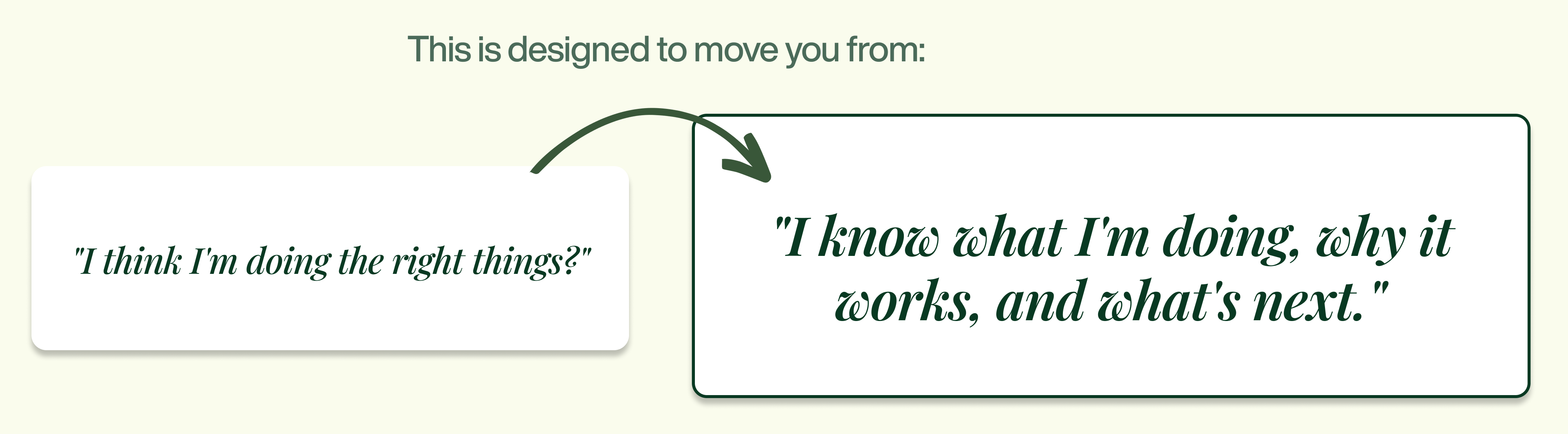 Free content gives ideas. Apps track. This builds your plan, your system, and your decision-making—with real support so you stick.