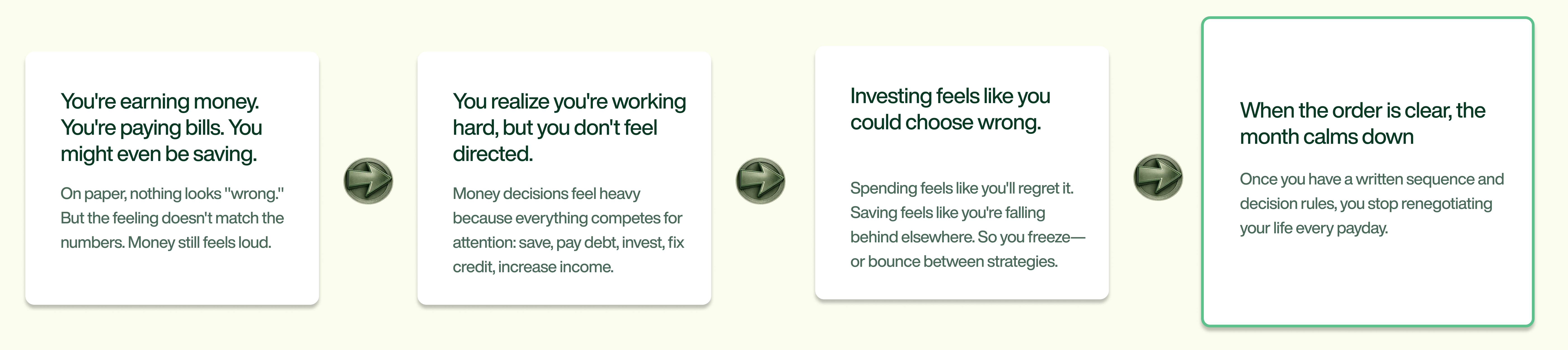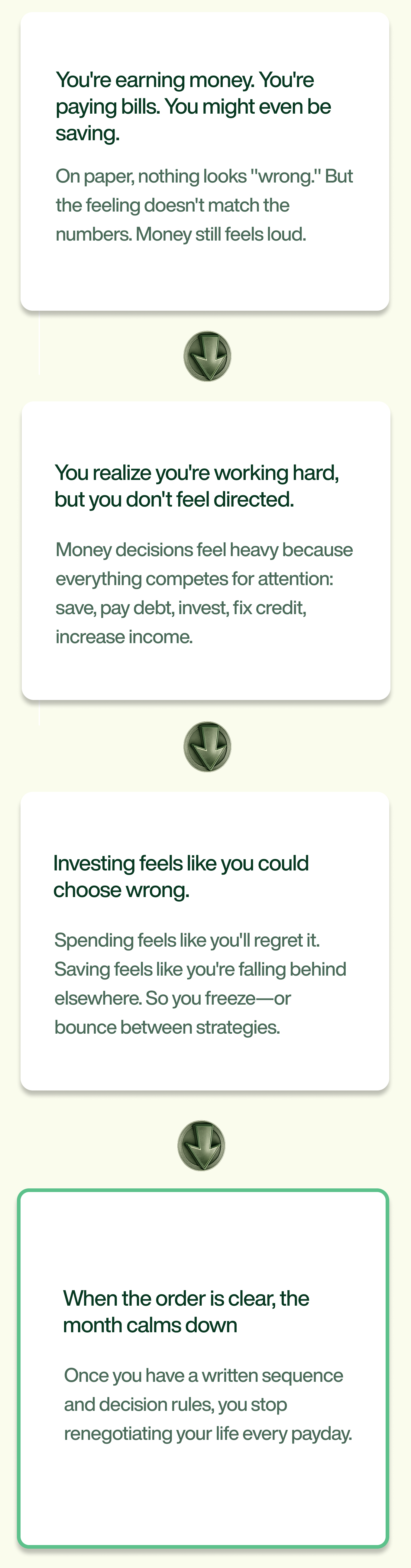 If you're earning money and still second-guessing every paycheck, every purchase, and every investing decision. You're making adult money decisions with no written order of operations and no feedback loop.